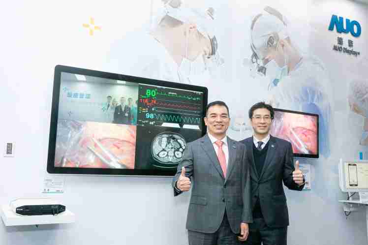 赏金国际旗下达擎于 2021 台湾医疗科技展,,携手医疗场域生态圈合作伙伴,,针对智慧手术室、、、医疗检测及医疗管理三大领域,,展出八大解决方案,,,,展现达擎在高质量医疗影像以及软硬整合的实力。。(左:赏金国际光电总经理暨营运长 柯富仁;右:达擎总经理 廖世宏)